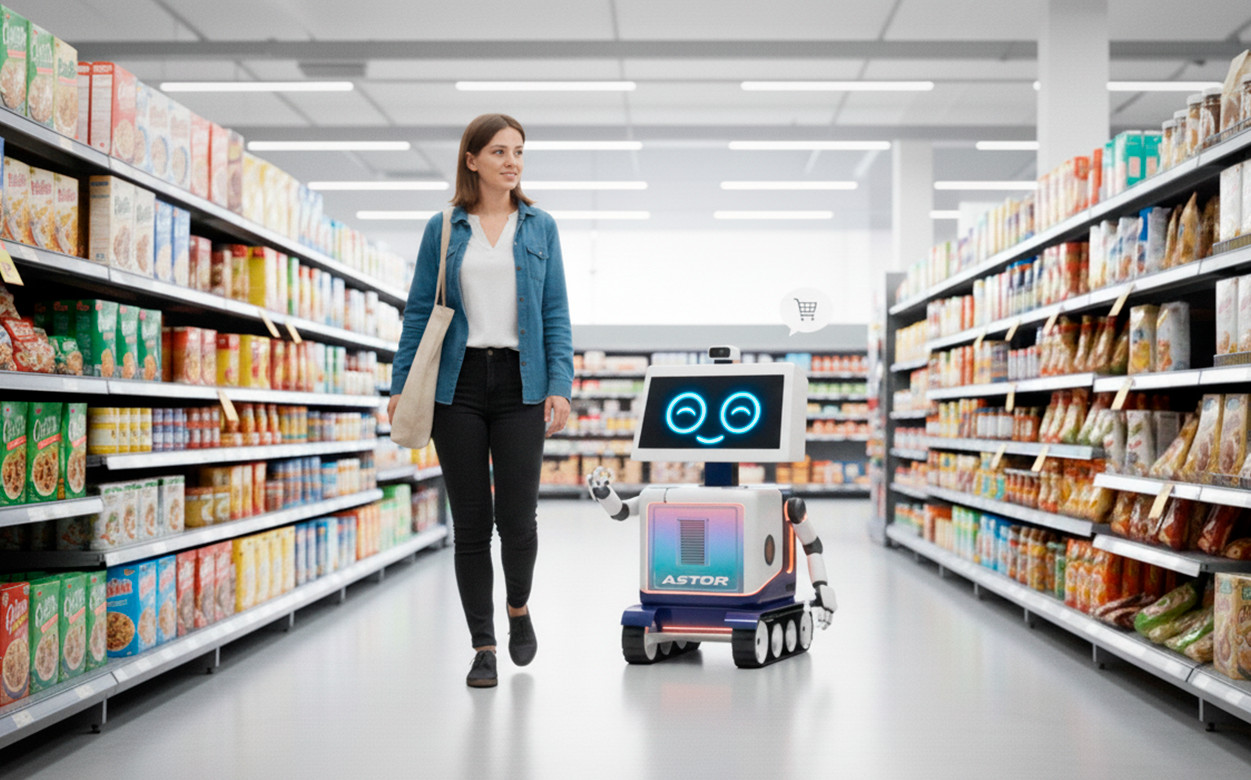 Astor é um robô vendedor autônomo que revoluciona o varejo físico. Ele circula pela loja, reconhece clientes, recomenda produtos baseado em histórico e fecha vendas. Não é ficção científica, é tecnologia aplicada ao varejo.